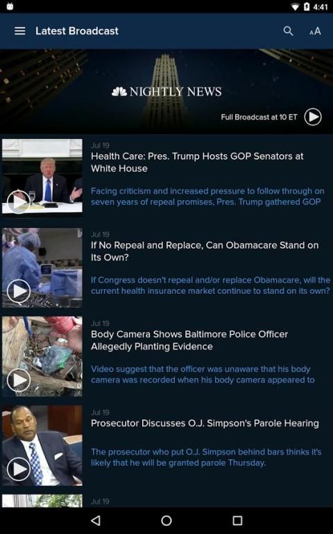 - انظر شرائح فردية من البث نايتلي نيوز أو مشاهدة البث في مجملها.