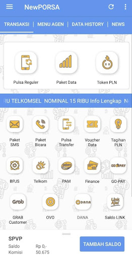 Aplikasi android NEW PORSA memudahkan Anda melakukan pengisian pulsa.