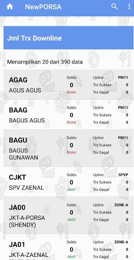 - Lihat agen downline beserta aktivitas transaksi agen downline