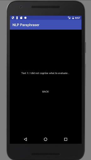 تطبيق Android يستخدم معالجة اللغة الطبيعية لتطوير كلمة دقيقة بواسطة صياغة Word.يستخدم Apis متعددة، بما في ذلك جزء من الكلام (POS) Tagger و API Thesaurus.بنيت مع الروبوت الأصلي لتحسين السرعة.أنا لست مسؤولا عن استخدام هذا التطبيق.