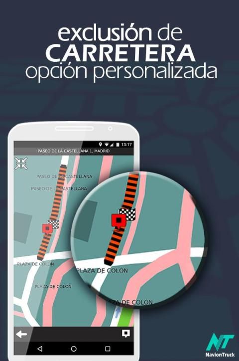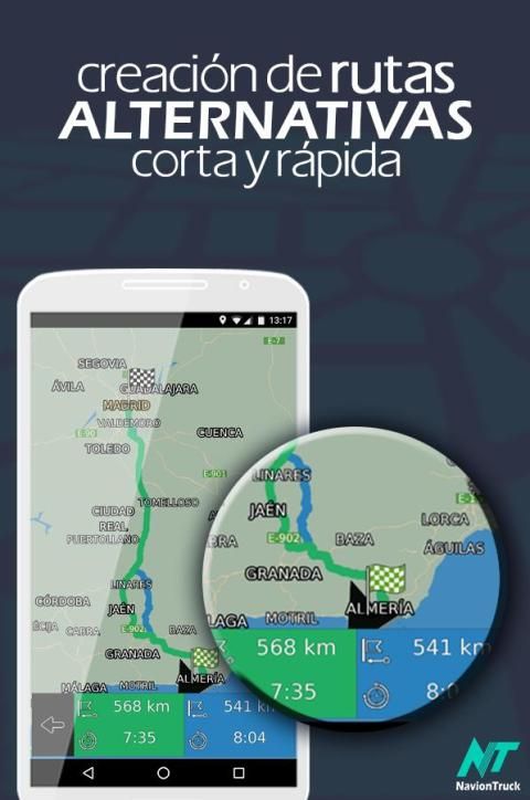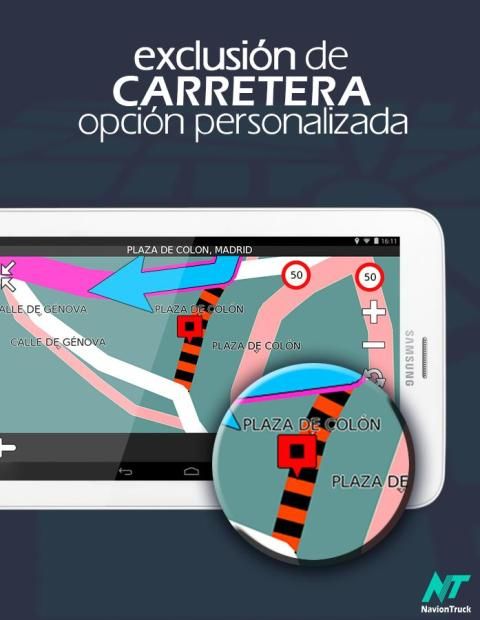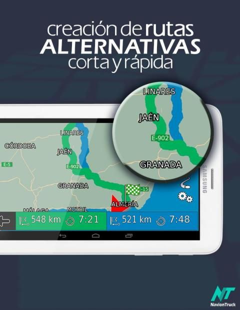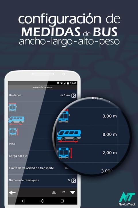 NavionTruck حافلة الملاحة هو نظام الملاحة GPS لوحي والهاتف الذكي المصممة خصيصا لسائقي الحافلات التي يمكنك من خلالها تحديد أبعاد ارتفاع السيارة، الطول، الوزن، وعدد من المحاور وعدد من المقطورات لتجنب الطرق الضيقة.
