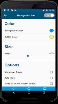 Navigation control bar offers the back button, home button and recents button along with an added button to move the navigation bar animation to the area of screen where you want it. You can also navigation bar changer root and navigation bar color changer.