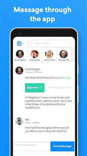 الجيران هي سوق حي الاقتصاد الاقتصادي الذي يساعد الأشخاص والشركات على صنع أو توفير المال على التخزين. ينقذ منصة نظير إلى نظير (P2P) المستأجرين 50٪، في المتوسط، مقارنة بالتخزين الذاتي و 14X أكثر أمانا من التخزين في منشأة تخزين ذاتية. يتم حماية المضيفين من المسؤولية غير العادلة، وتلقي دفعات مضمونة، ولا تدفع لاستخدام النظام الأساسي.