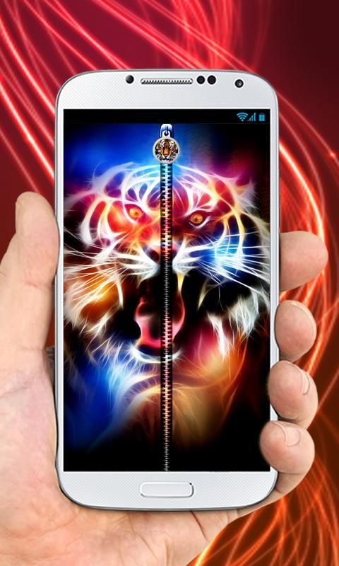 --Neon Tiger Zipper Screen Lock works with Android mobiles and tablets