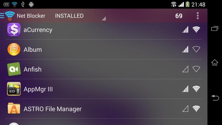 This app is used to prevent apps from accessing the Internet, either Wi-Fi or mobile data (GPRS/3G/4G).