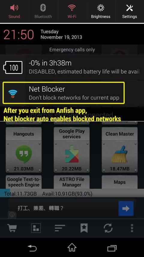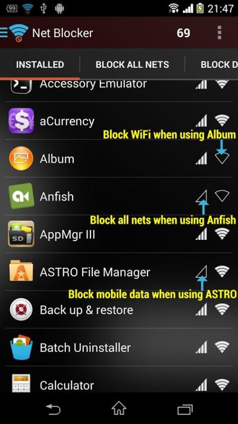 4. "Net blocker" app will automatically disable the Internet connection when the blocked app is running in the foreground