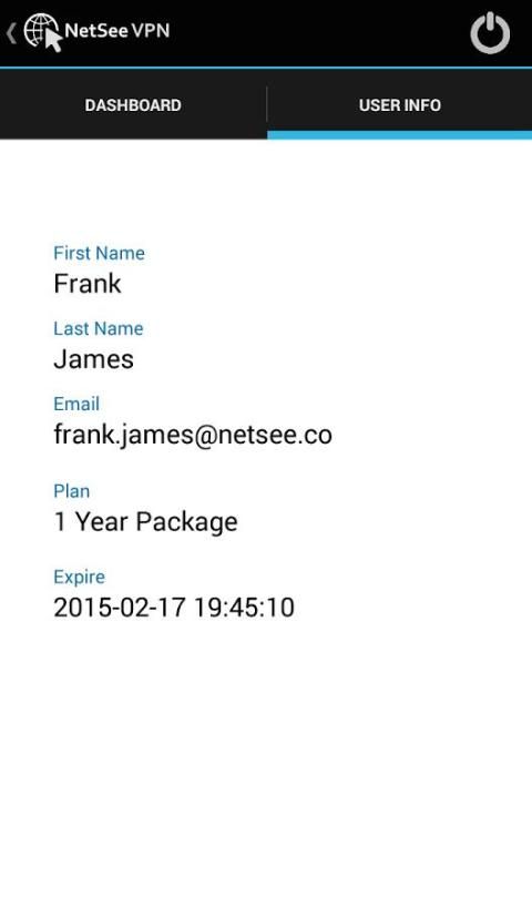 كما يقدم التطبيق NetSee VPN ملخص سريع حول تفاصيل الاشتراك. وهكذا، يمكنك عرض تاريخ انتهاء الصلاحية، فضلا عن عرض النطاق الترددي المتبقية لحسابك.