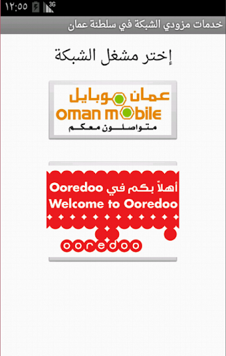 خدمات مزودي الشبكة- سلطنة عمان هو برنامج لتسهيل خدمات الشحن والتحقق من الرصيد والاشتراك في باقات الانترنت في عمان.