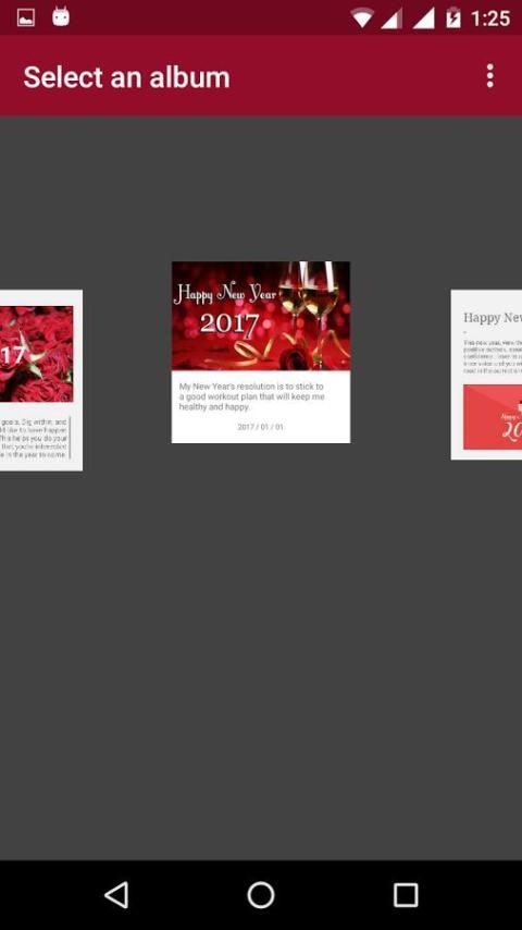 - يمكنك اختيار بطاقة العام الجديد من أصناف من الصور من وجهة نظر التمرير من الصور المصغرة.