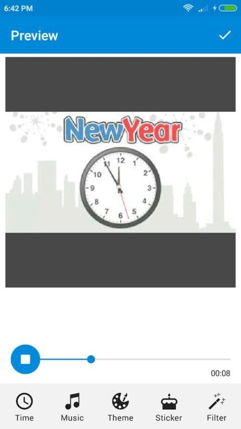 أيضا إضافة ملصقات مختلفة وأيضا يمكنك وضع الموسيقى الخلفية العام الجديد. تشغيل الموسيقى عرض الشرائح الخاصة بك واللعب تلقائيا.
