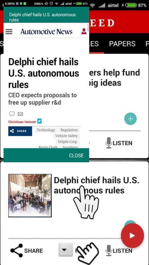 • استمع إلى الأخبار - ليست حرة بما فيه الكفاية لقراءة من الهاتف؟ الاستماع إلى جميع الأخبار في قائمة الانتظار والتوقف عند الحاجة.