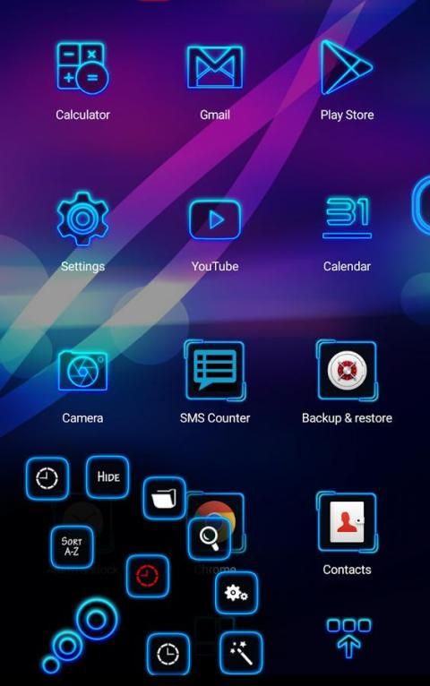 Go to Home Screen ⇒ Menu ⇒ Themes ⇒ Installed ⇒ Neon 3D Theme ⇒ Apply.