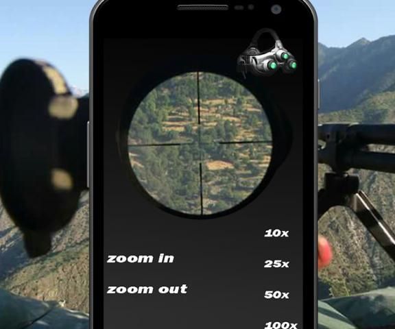 Zoom in on live Camera Preview and turn on a simulated Night Vision Filter Camera with Flashlight to improve your Vision and better recognize edges. Use now your Phone as Military Binocular or Telescope Compass with helpful Crosshairs to measure and calculate distances.