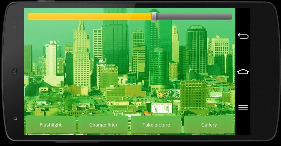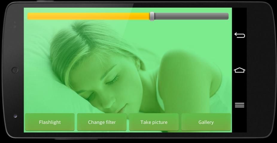 This night vision device is useful tool. This night-vision camera allows you to quickly turn on the flashlight, change color filter or take a picture! It is fast and easy to use! You can choose from 5 different filter colors! This night vision camera simulator allows you to zoom in or zoom out the image! Download nightvision device simulator for free and it will help you with see in the night!