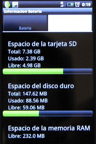 Conoce, de una forma facil y sencilla, el nivel y estado de la bateria de tu movil. Ademas puedes consultar la cantidad de memoria interna o de SD card que ests utilizando.