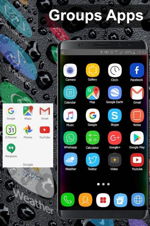 Apply the Theme for Note 8 launcher plus theme now, to make your phone faster and organized. The original app icons, clock and weather theme of your phone will be replaced by the Note 8 Launcher 2018-Galaxy Note 8 Launcher Theme.