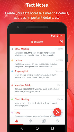 عندما تكون متعبا لجعل النص ملاحظة فقط استخدم ملاحظات الصوت فقط سجل اجتماعاتك ومحاضراتك ومقابلاتها وجلسات الدراسة وما إلى ذلك.