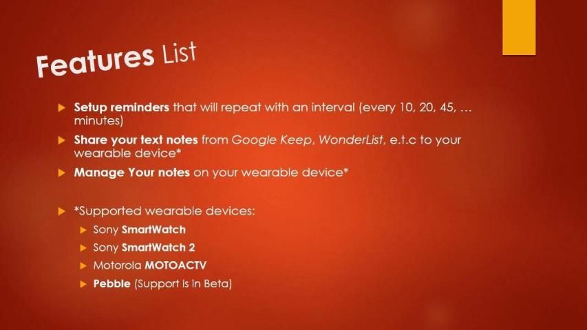 * إرسال الملاحظات من الملاحظات الخاصة بك يشار التطبيق (جوجل حافظ، Wunderlist، ايفرنوت وهلم جرا) لsmartwatch الخاص بك.