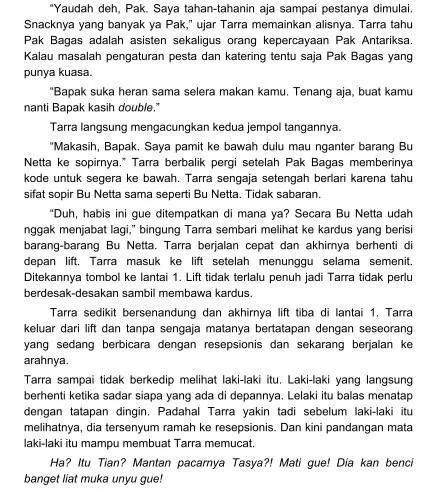 Emang nyebelin kalo Mr. Cupid malah ngirimin panah asmara ke seseorang yang pernah mengaku kalau dia adalah sahabat baik Tarra. Tarra sudah berusaha menjitak kepala Mr.Cupid tapi gagal karena Mr. Cupid punya sayap dan dia gak punya. Disitu kadang … ah, emang sedih Tarra.
