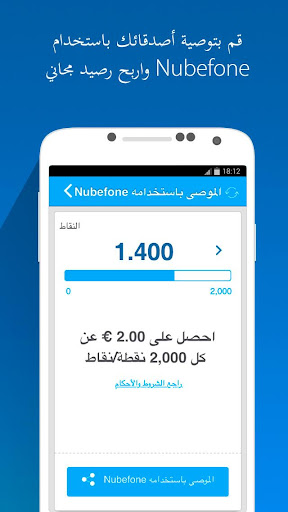 - احصل على رصيد مجاني: احصل على رصيد مجاني على كل جهة اتصال تقوم بدعوتها لاستخدام Nubefone.