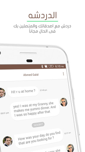 • دردشه: يمكنك الدردشه والتواصل مع المتصلين والمستخدمين للبرنامج بكل سهوله مجاناً وتخلص من رسوم الرسائل القصيره.