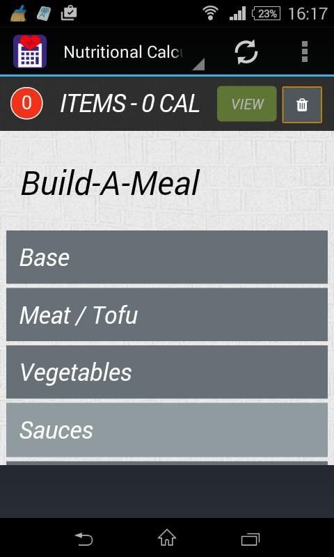 هذا التطبيق هو منشئ وجبة والتغذية الحاسبة التي تسمح لك لإنشاء وتبادل وجبات الطعام من خلال اختيار المكونات من يصنف القوائم.
