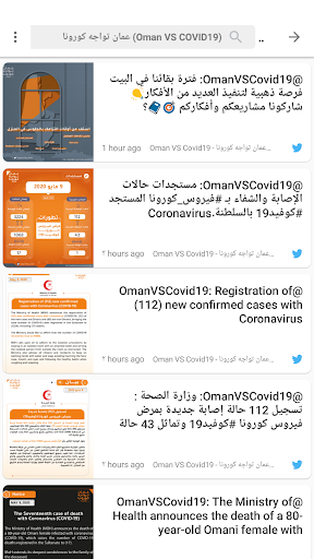 جميع اخبار السلطنة من حسابات مختلفة على تويتر في تطبيق هاتف