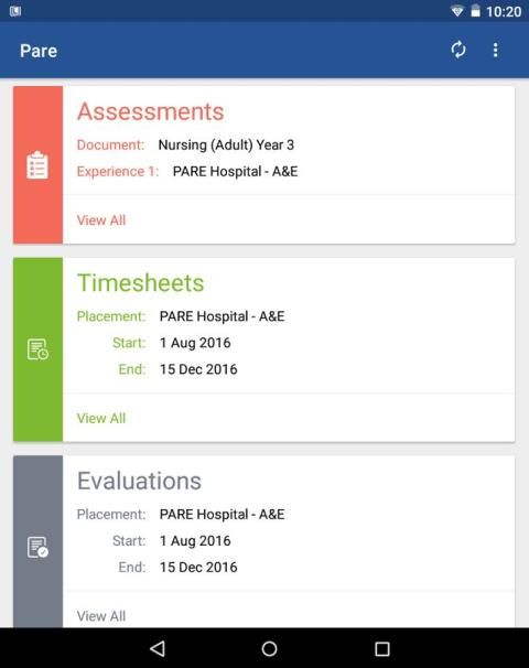 القوة الدافعة الرئيسية وراء هذا التطبيق هو الحاجة إلى القدرة دون انقطاع للطلاب للوصول إلى سجلات تقييم ممارساتها على الانترنت بغض النظر عما إذا واي فاي أو الجيل الثالث 3G متاح ضمن بيئات ممارسة المجتمع. هذا حاليا حل يتيح للطلاب لتحديث وثائق تقييم ممارساتها وجداول زمنية في أي وقت وفي أي مكان. المشرفين الممارسة والموجهين ويمكن أيضا أن يوقع أجزاء من الوثيقة ورقة الوقت دون اتصال بالإنترنت. في أقرب جهاز الطالب يتصل الإنترنت، تتم مزامنة كافة التغييرات على النظام OnlinePARE الحية.