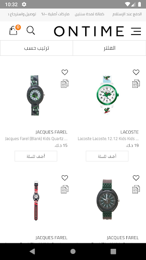 أون تايم هو تطبيق التسوق الشامل للساعات والمجوهرات والأكسسوارات الأصلية ويحوي أكثر من 60 علامة تجارية معروفة من أحدث صيحات الموضة. مع وجود العديد من الأنماط والمواد المختلفة للاختيار من بينها، يمكنك اختيار أفضل ما يلائم شخصيتك. ساعاتنا متوفرة بأنواع مختلفة من أنماط الساعات الكلاسيكية، الكاجوال، الفاخرة، التناظرية والهجينة إلى الساعات الذكية التي تناسب شخصيتك ومزاجك. فارتداء الأكسسوارات المناسبة يعزز مظهرك عندما تأتيك بمجموعات. ولذلك قمنا بإدخال تسهيلات أنقر واجمع لعملاء تطبيق أون تايم للحصول على ما يريدون من واحد من مئات متاجر أون تايم القريبة.