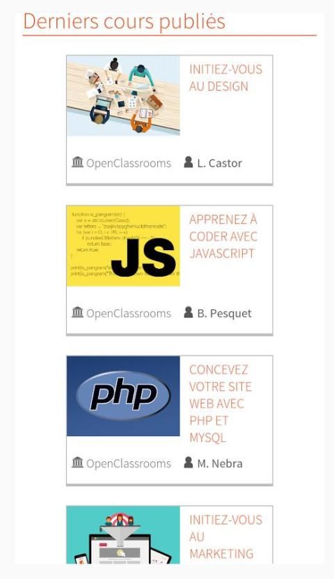 OpenClassrooms هو موقع دورة على شبكة الإنترنت. كل زائر على حد سواء يمكن أن يكون القارئ أو الكاتب. ويمكن إجراء دورات خارج على حد سواء من قبل أفراد، من قبل فريق الموقع، أو ربما عن طريق أساتذة الجامعات أو المدارس الشريكة كبيرة. ركزت في البداية حول برمجة الكمبيوتر، ومنصة منذ عام 2013 وتغطي موضوعات أوسع مثل التسويق وريادة الأعمال والعلوم.