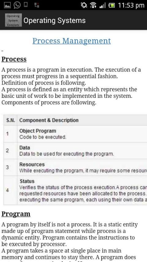 يحتوي هذا التطبيق نظام التشغيل (OS) إشارة المفاهيم الجيب. أنظمة التشغيل هو الموضوع الأكثر إثارة للاهتمام في برامج البكالوريوس ودرجة الماجستير. ويستخدم على نطاق واسع أيضا نظام التشغيل الموضوع في المقابلات والامتحانات التنافسية الخ