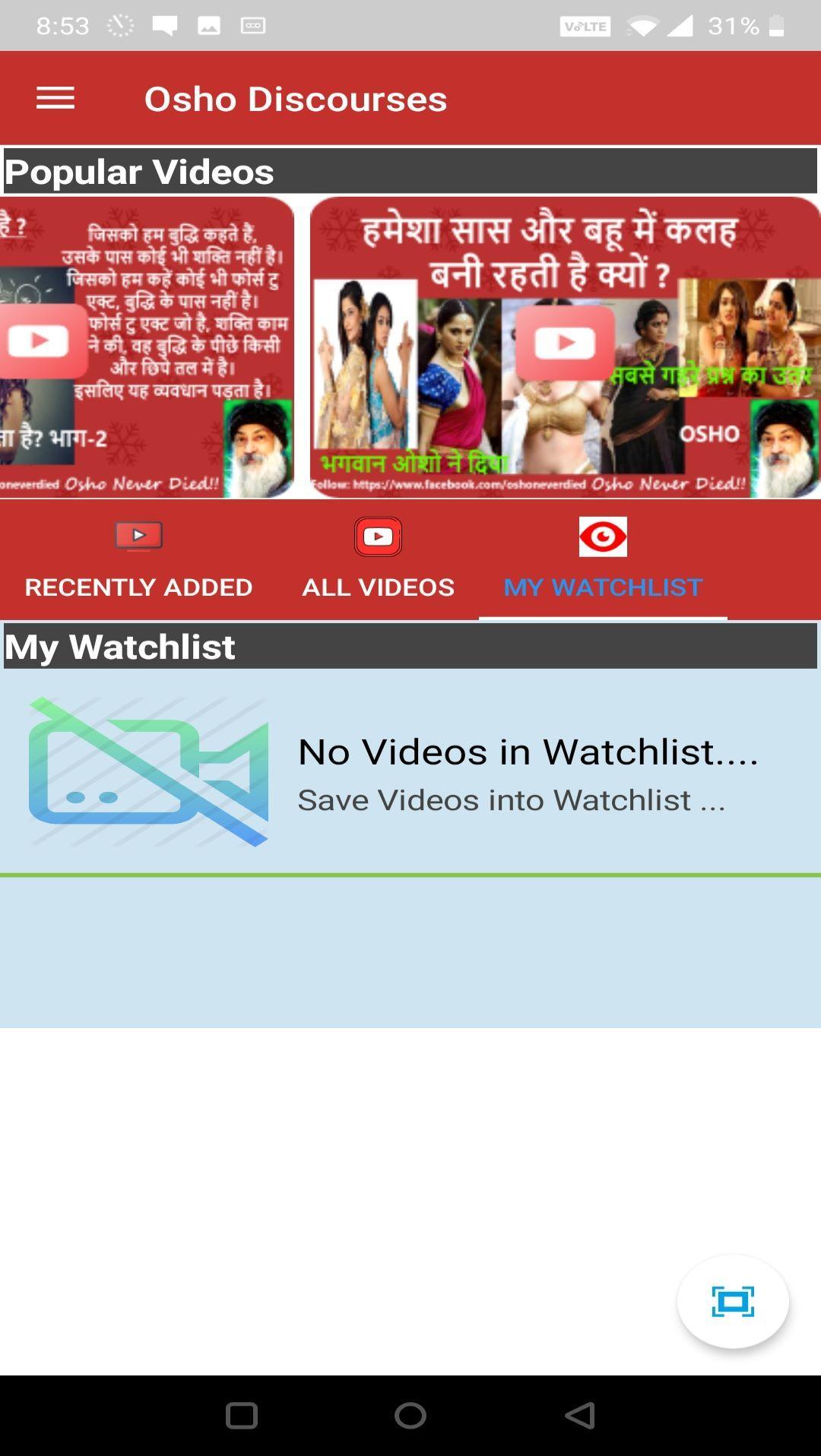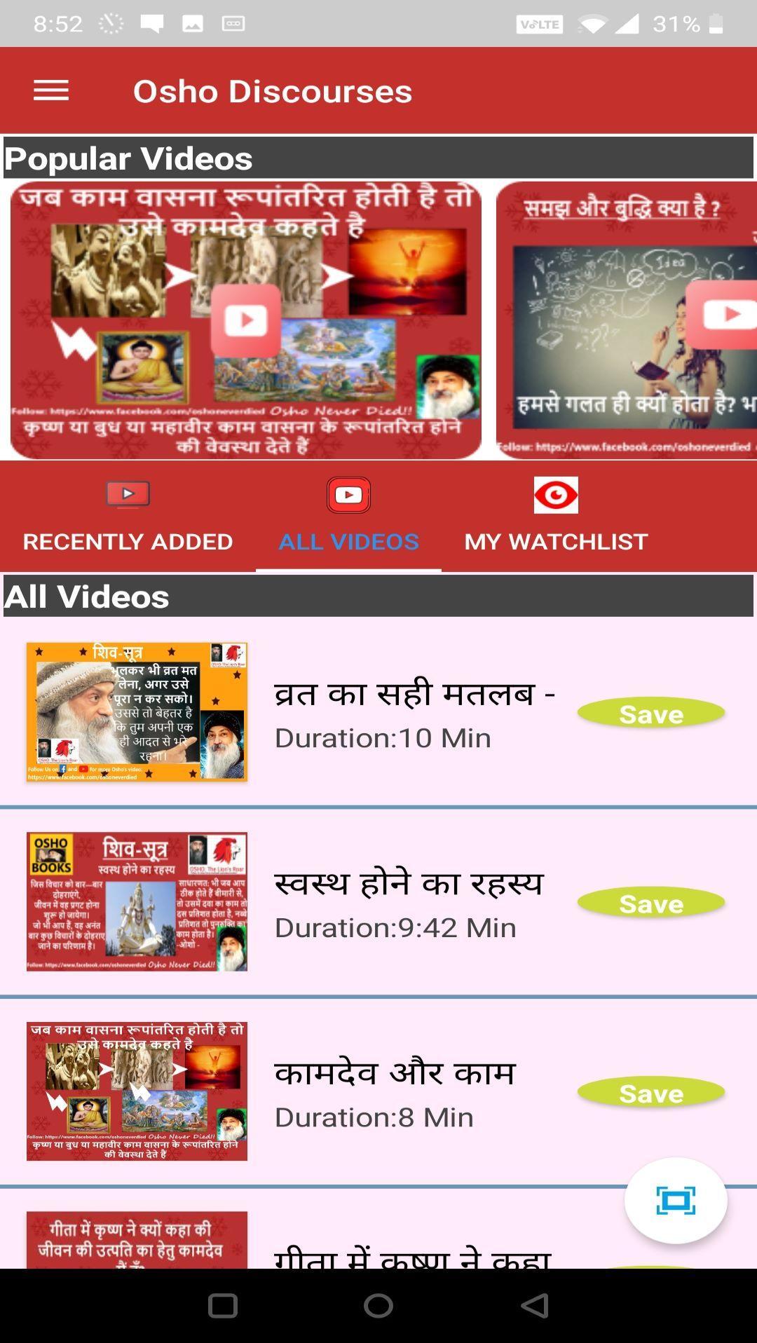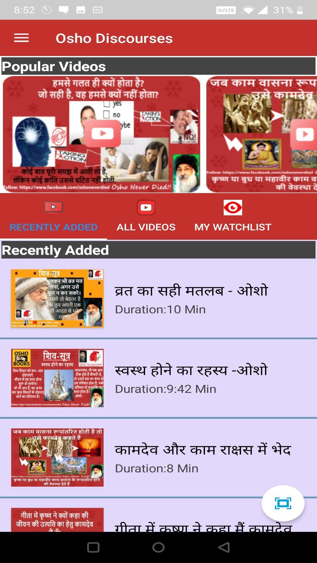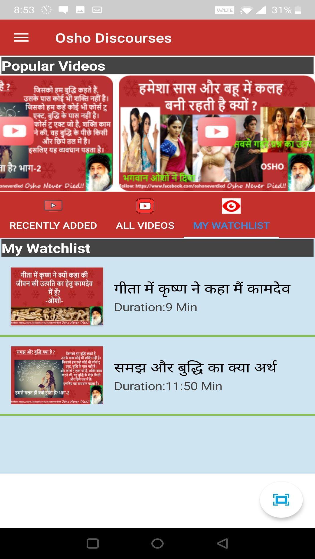 Osho Discourse Videos App gives a glimpse of a few of his most interesting thoughts about life. It has collection of interesting videos. Osho has spoken on almost every topic and every problems of life and we are trying here to provide a platform to access to a few videos in which he has answered the important questions. It's a platform that gives an opportunity to watch and listen his thoughts directly expressed by our Spiritual Guru Osho. The videos are an amalgamation of many discourses given by Osho during his visit to the planet.