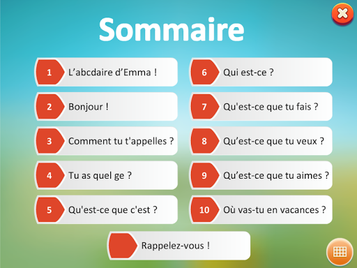 نعم نعم ، هي طريقة فرنسية على 7 مستويات مخصصة للأطفال والمراهقين قبل 5 إلى 12 عامًا.إنه يتوافق مع المستويات A1 و A2 و B1 من الإطار المرجعي الأوروبي المشترك (CECR) للغات. 103 كلمات موضحة فيما يتعلق بتجربة الطفل. .