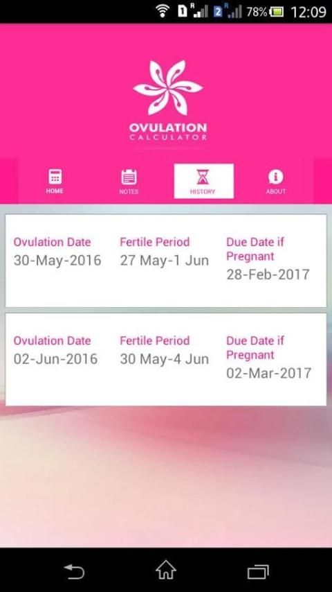 OvulationCalculator هو تطبيق بسيط متواجد حاليا استخدام لحساب وقت التبويض وتحديد الفترة الخصبة. ما عليك سوى اختيار متوسط عدد الأيام في دورتك الشهرية وتاريخ الأول من آخر دورة شهرية، وتاريخ الإباضة وفترة الخصوبة الخاص بك سيتم عرض ويمكنك تسجيل نتيجة الجواب تحقق نفسها في التاريخ. يجري الحميمة خلال فترة خصبة يحسن إلى حد كبير من فرص لتتمكن من الحمل. يعرض التطبيق أيضا على التاريخ المتوقع للولادة إذا كنت يحدث لتصور في ذلك الوقت.