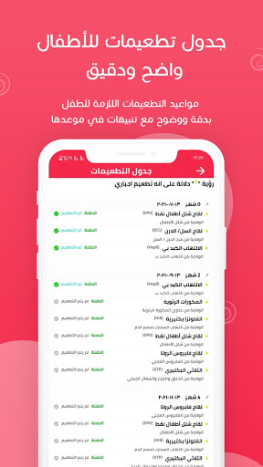 - الحصول على إشعارات للتذكير بمواعيد التطعيمات اللازمة للأطفال.