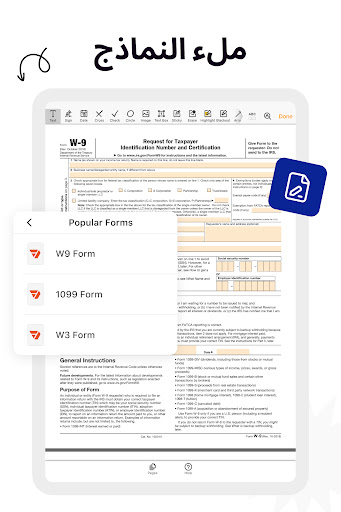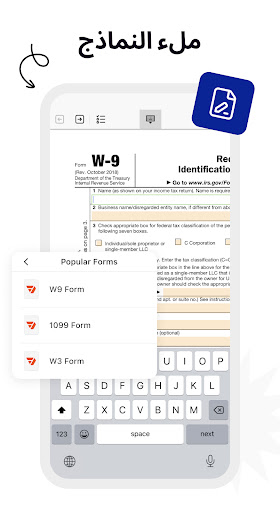 ✅ ملء النماذج في مُحرّر PDF النصي.