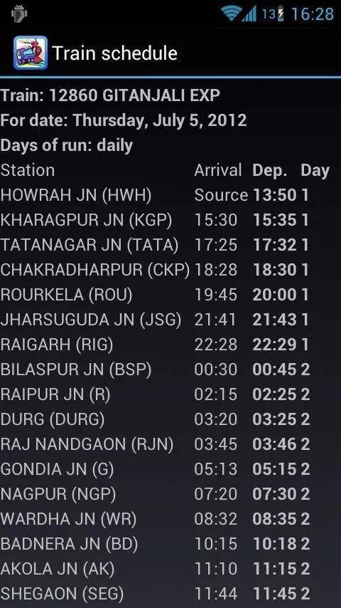 - Train schedule from train name or train number (including train name search and automatic save of all train schedules)