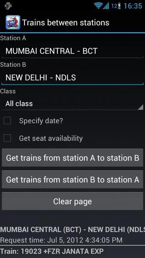 - Trains between stations (with an option to display seat availability of all matching trains in the same page)