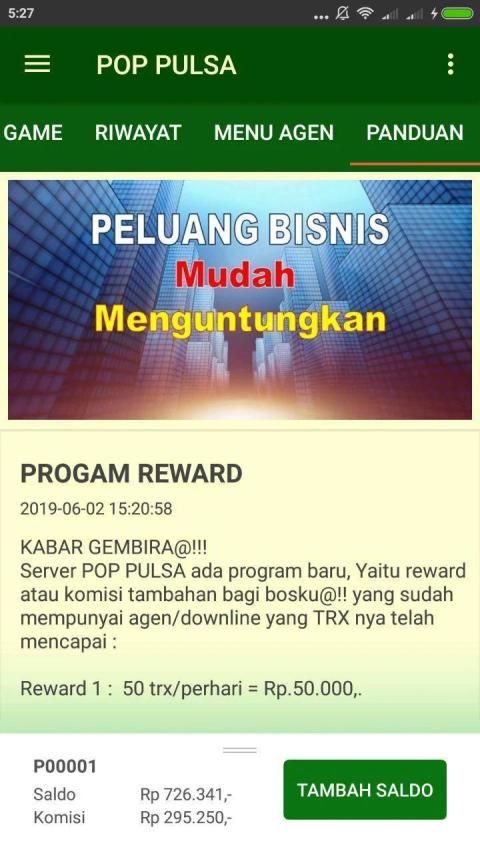 The "POP PULSA" application is a special free mobile application for loyal agents of POP PULSA servers wherever they are. This application makes it easy for Agents to carry out various TRANSACTIONS, such as: Credit top up, Purchase electricity tokens, Postpaid bill payments, Game voucher purchases, etc.