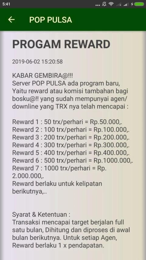 Aplikasi "POP PULSA" adalah aplikasi mobile gratis Khusus Buat Agen setia server POP PULSA di mana pun berada. Aplikasi ini memudahkan Agen dalam melakukan berbagai TRANSAKSI, seperti : Pengisian pulsa, Pembelian token listrik, Pembayaran tagihan pasca bayar, Pembelian voucher game, dll.