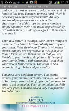'PalmSigns Lite' is an application built around the concept of Palmistry. Palmistry being an ancient science is for analyzing the lines and symbols in our Palms. Our application tries to analyze some of these attributes and based upon them, generates a detail report which gives a clear picture about your personality. The application uses high resolution graphics and presents highly interactive user interface which is very easy to use at the very first time.