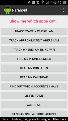 يحلل Paranoid for Android جميع التطبيقات المثبتة على جهازك لتحديد التطبيقات التي يمكن أن تتجسس عليك.يفعل ذلك من خلال تحليل مزيج الأذونات الممنوحة لكل تطبيق.
