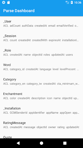 الاستعلام عن جهاز التحليل الخاص بك على الذهاب مباشرة من هاتفك.Parse Dashboard هي عميل جميل أندرويد API لإدارة تطبيقات التحليل الخاصة بك من هاتف Android الخاص بك.