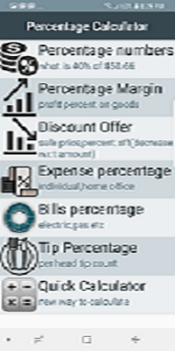 Percentage calculator is a simple and functional application intended for everyday use. It gives you functions you need for making fast calculations in everyday work. All functions of the calculator are clear and anyone can easily use it.
