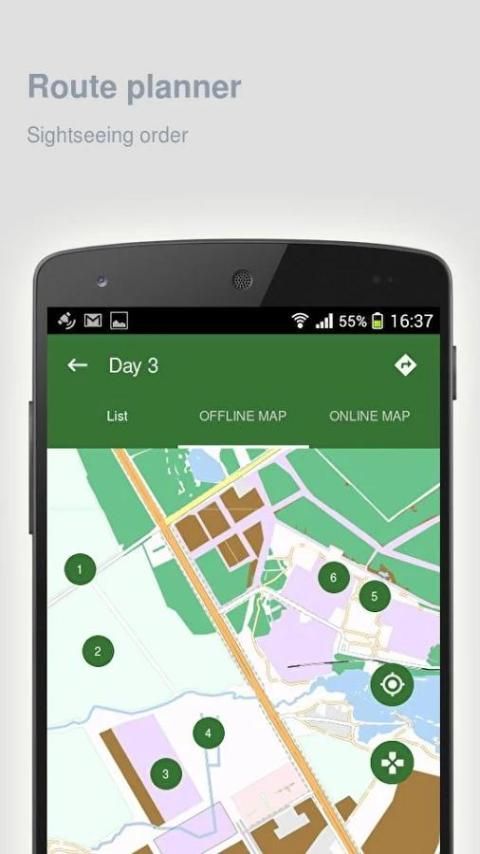 - المدمج في مخطط الطريق يسمح لك لوضع خطط لزيارة المعالم.