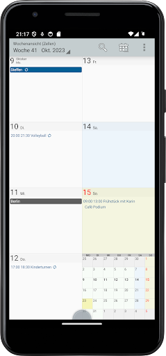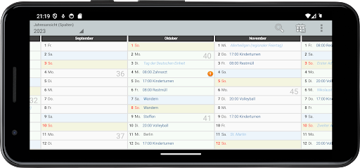 - التكبير المتاح في عرض اليوم ، ومجموعة الشهر/اليوم ، وعرض الأسبوع القائم على العمود وعرض السنة