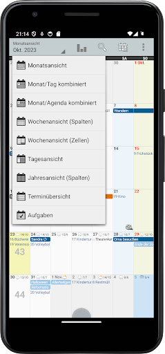- المشاهدات: الشهر ، الأسبوع (الخلايا) ، الأسبوع (الأعمدة) ، اليوم ، السنة ، الجمع الشهري/اليوم ، جدول الأعمال