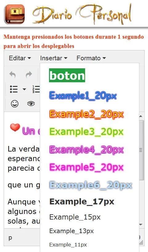 في هذا اليوم الذي سوف أكتب كل يوم كل خبراتكم ويكون لهم المخزنة، ولا أحد يستطيع الوصول إليها والحصول على أن يكون أسرار للتخصيص بشكل كامل، يمكنك اختيار الأساليب مع الأساليب للعناوين، أو يمكنك وضع الرموز في صحيفة التي الرسوم المتحركة، يمكنك أيضا إضافة الصور ومقاطع الفيديو من URL، أي يمكن نسخ من الشبكات الاجتماعية، إلى جانب وجود كل الخيارات الأساسية للمحرر نص، مثل غامق ، يؤكد والشخصيات والرموز الخاصة، لون الخط والخلفية، وخلق الجداول ...