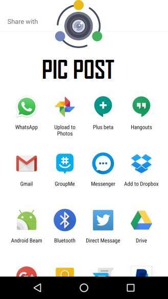 فقط ابدأ الموافقة المسبقة عن علم بوست، انقر على صورة ومشاركتها على الفور إلى المفضلة الشبكات الاجتماعية الخاصة بك مواقع، تطبيقات أو بلوتوث / واي فاي.