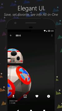 Save, set, favorite and view the info all with just one tap while seeing the full-sized wallpaper in fullscreen! Minimally elegant. Zero distractions.